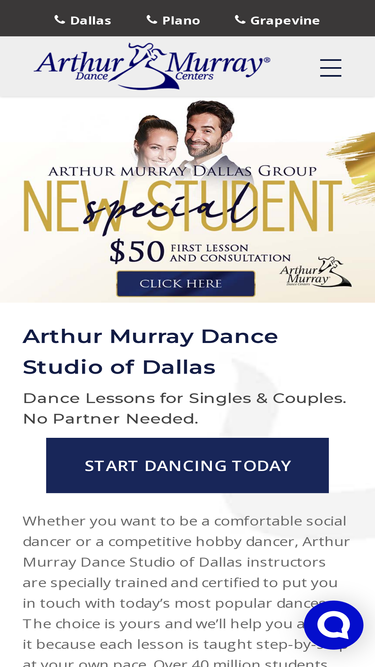 90%Sign up for beginner dance classes and lessons for adults at Arthur Murray Dance Center in Dallas, Texas. It is our experience that every person has different needs, preferences and time schedules but everyone has the ability to be a good dancer with enough time. Schedule your free first lesson today!