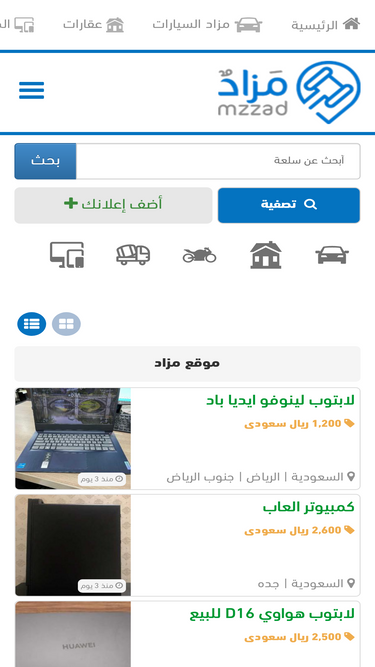 موقع مزاد ، منصة مزاد شراء وبيع كل ما تريده من السلع المتنوعة منصة مزاد سوق و حراج سعودي يحتوي مزاد عقارات حراج السيارات أجهزة مزاد السوق المفتوح حراج عقار مستعمل وجديد سياره للبيع فيلا للبيع ارض للبيع مزاد علني مزاد الالكتروني