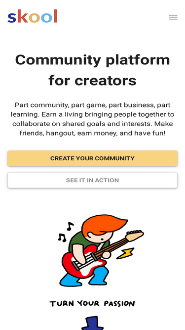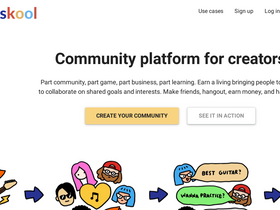 94%Skool is a community platform. You can discover communities or create your own. Some are free, some paid. People earn full-time incomes building on Skool. You can, too!