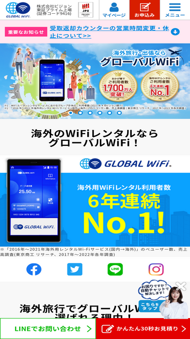 78%海外WiFiレンタルならグローバルWiFi。大容量・無制限・4G(高速)プラン・長期割プランで安く、快適に海外でネットを利用可能。全国空港/国内カウンターでの事前予約・当日受取可。海外に出張 旅行 留学で行くなら格安WiFiは必需品! モバイルルーターなら【グローバルWiFi】