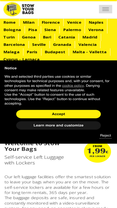 92%Stow Your Bags offers luggage storages in the most important Italian cities, verify Terms and Conditions, our guarantees and the included insurance.