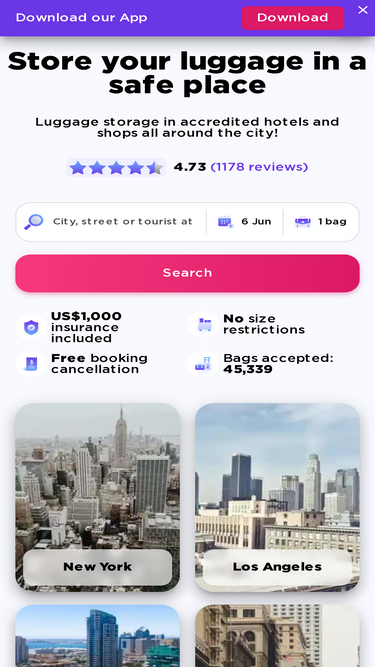 100%Find your closest luggage storage and enjoy your journey until the very end!