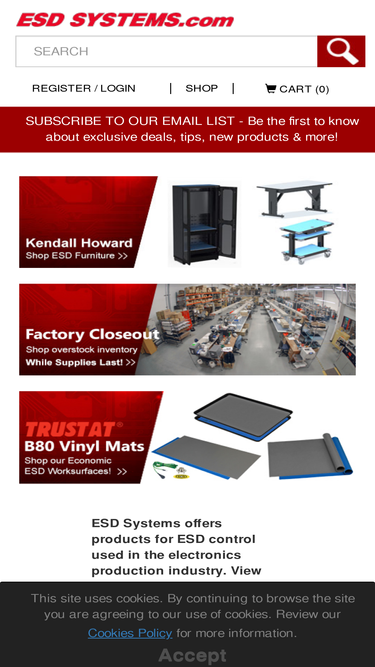 89%an online leader for esd solutions servicing the electronics manufacturing industry. products include grounding, packaging, vacuum sealers, flooring, more.