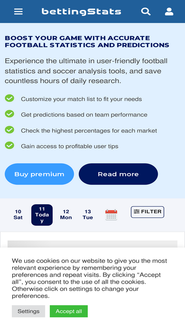 94%Check the latest football statistics and predictions on BettingStats.org. We provide football stats and tips based on the teams statistics.