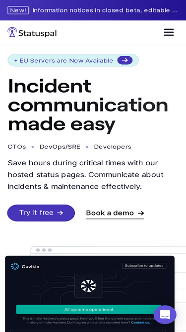 74%Discover why many IT, software, and retail companies have chosen StatusPal as their no.1 choice for a status page.