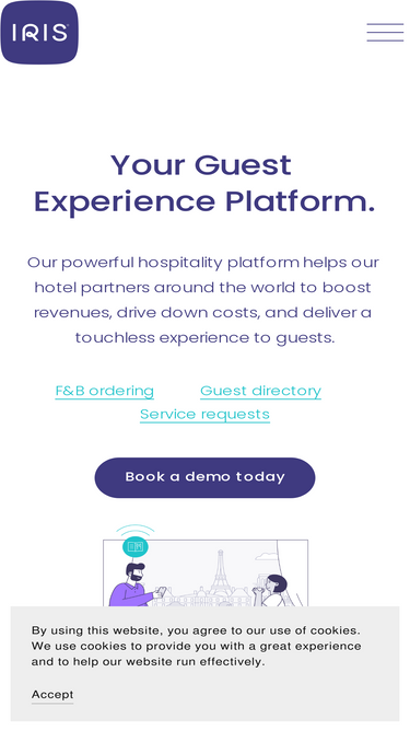 70%IRIS F&B enables contactless mobile ordering, allowing guests to easily browse, order and pay - all from the comfort of their own devices. Ideal for both independents and hotel chains, staff can manage features and functionality so that the solution works to streamline operations. Integrations to leading POS, PMS and payment providers are available. Boost F&B spending and increase average check sizes when guests can order on their terms and don't have to flag down waiters, and delicious upsells are paired with the right menu items. Find out how hoteliers achieve an average of 20% increase in F&B revenue through order uplifts and reduce resource times by 3 minutes per order. Guest Directory and Digital Concierge software also available from IRIS providing a one stop guest experience platform.