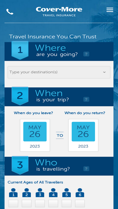 88%planning a holiday? get a free cover-more travel insurance quote now. trusted by 15 million global travellers. 17+ years’ experience. backed by zurich.