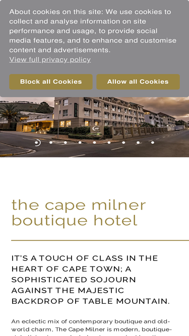 99%it’s a touch of class in the heart of cape town; a sophisticated sojourn against the majestic backdrop of table mountain. an eclectic mix of contemporary boutique and old-world charm, the cape milner is a modern, boutique-style living in a secluded, yet convenient location.