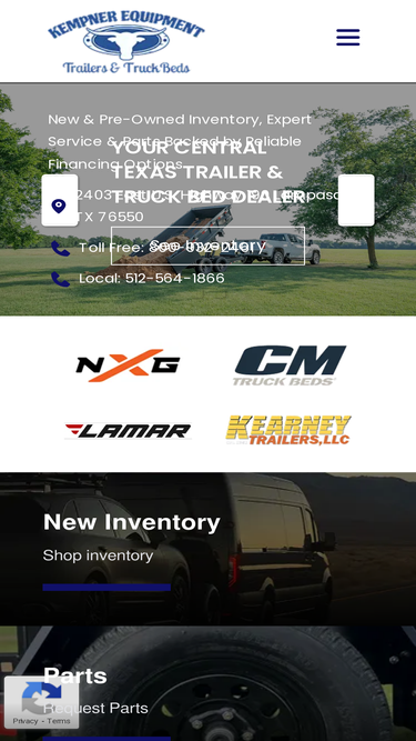 88%kempner equipment is a trailers & truck beds dealership located in lampasas, tx. we sell new and pre-owned truck beds, horse trailers, stock trailers, car haulers, dump trailers and equipment trailers from cm truck beds, cm trailers, lamar, sure-pull and titan trailer with excellent financing and pricing options. kempner equipment offers service and parts, and proudly serves the areas of waco, temple, austin, san antonio, and abilene.