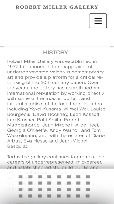 100%Founded in 1977, Robert Miller Gallery established an international reputation by working directly with important and influential artists of the last 3 decades.