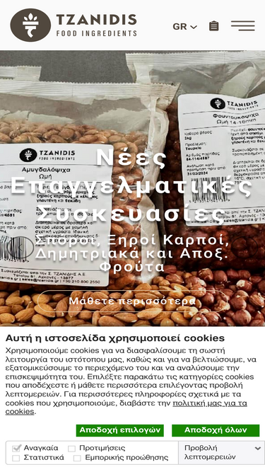 92%Καλώς ήρθατε στην Σ. ΤΖΑΝΙΔΗΣ Α.Ε. Ειδικοί στην εισαγωγή, επεξεργασία, συσκευασία και χονδρική πώληση πρώτων υλών διατροφής, όπως σησάμι, ξηροί καρποί, σπόροι κ.α.