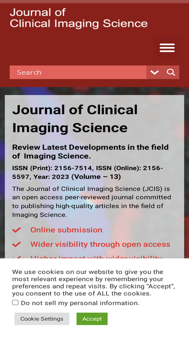 100%The Journal of Clinical Imaging Science (JCIS) is an open access peer-reviewed journal committed to publishing high-quality articles.