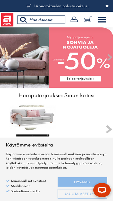 82%askosta löydät laadukkaat huonekalut, sohvat, matot ja sisustusratkaisut! tilaa helposti verkkokaupastamme tai tule käymään myymälässämme. tervetuloa ostoksille!