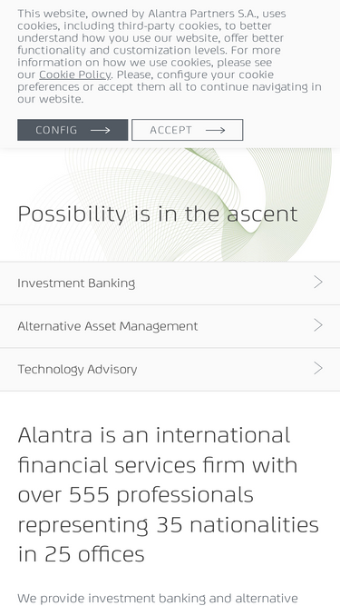 100%Alantra is an international financial services firm with over 500 professionals across EMEA, the Americas, and Asia.