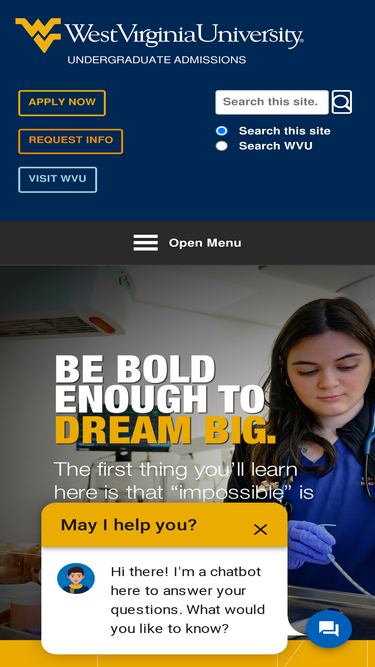 85%interested in attending wvu? find everything you need to apply and start your mountaineer journey.