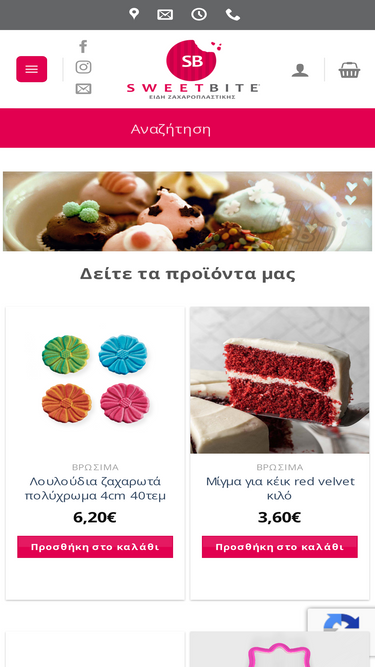 100%Σας καλωσορίζουμε στο νέο μας κατάστημα αυτή τη φορά ηλεκτρονικό! Σας καλωσορίζουμε σε έναν χώρο μαγικό, αρωματικό, γεμάτο χρώματα, σχέδια και γλυκές γεύσεις. Είμαστε το Sweetbite.gr και εδώ θα βρείτε μεγάλη ποικιλία σε είδη ζαχαροπλαστικής. Χρώματα, ζαχαρόπαστες, κουβερτούρες, διακοσμητικά, εργαλεία, όλα όσα χρειάζεστε για να δημιουργήσετε τα γλυκά αριστουργήματά σας. Κάποιοι ήδη μας γνωρίζετε, μιας και έχετε επισκεφθεί το κατάστημά μας στον Εύοσμο Θεσσαλονίκης. Με κάποιους τα έχουμε πει μέσω facebook. Μας γνωρίζετε ως "Ζωή, καρποί της γης" αλλά θα σας συστηθούμε ξανά ως Sweetbite. Εδώ θα μπορείτε να δείτε τα προϊόντα μας, να μας ρωτήσετε ό,τι θέλετε γι αυτά και τη χρήση τους, αλλά και να μας ρωτήσετε οτιδήποτε θέλετε για τις συνταγές σας. Θα σας δείχνουμε διάφορα tutorials και θα σας δίνουμε συνταγές που έχουμε δοκιμάσει οι ίδιοι και είμαστε σίγουροι για το αποτέλεσμα. Σας καλοσωρίζουμε λοιπόν στη νέα αυτή παρέα! Καλώς ήρθατε στο Sweetbite!