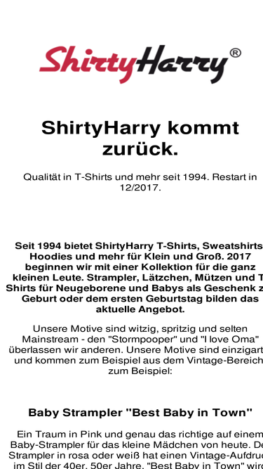 100%shirtyharry bietet ein umfangreiches standardsortiment fuer anspruchsvolle kunden zum g�nstigen preis. hierzu gehoeren preiswerte t-shirts, kinder-shirts, polo-piques, sweatshirts, girly shirt, raglan shirts, fleece jacken und windbreaker.