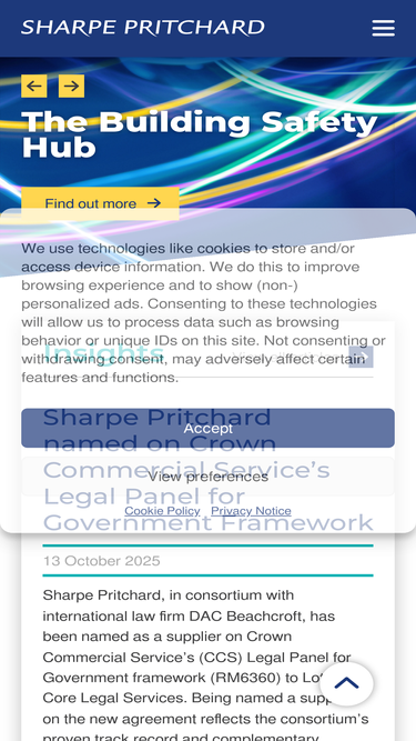 100%Click here to get in touch with the expert legal professionals and solicitors at Sharpe Pritchard for help with any issue.