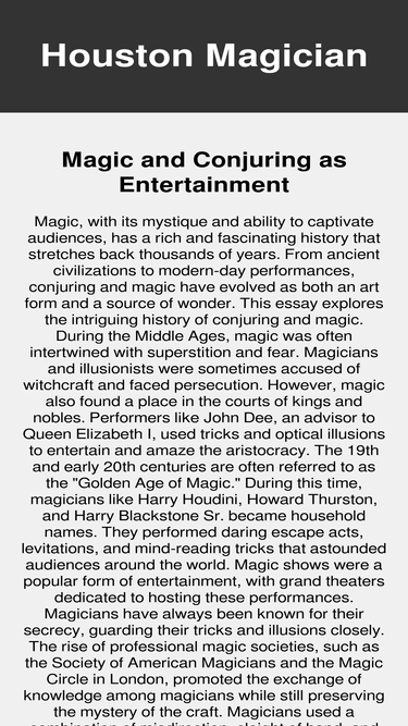88%houston magician steve burton provides award-winning entertainment for your next event! we offer magic shows for your birthday party, family gathering or company promotion.