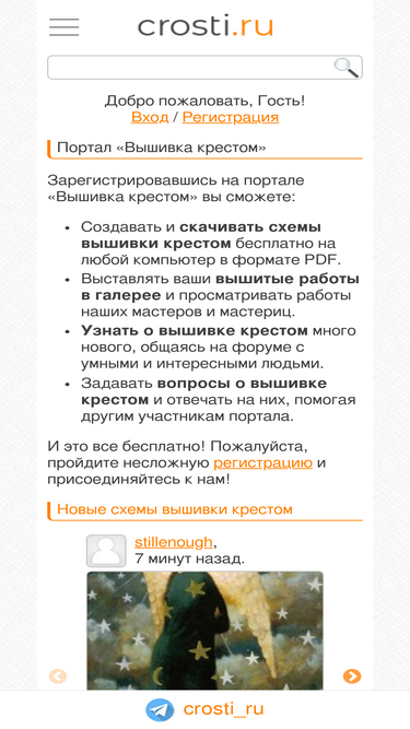 88%портал «вышивка крестом» позволяет создавать и скачивать схемы вышивки крестом из любых картинок, также на портале есть форум, галерея вышитых работ и многое другое.