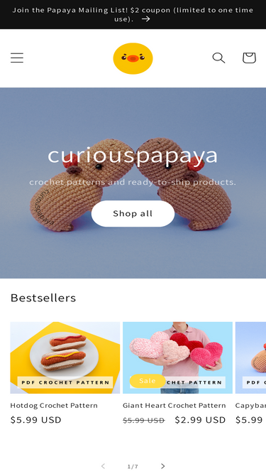 79%-This PDF pattern is available in English only in US terminology. -This is a digital item, you will NOT receive a physical item in the mail. -The finished product will be 8.5 in. x 3 in. [~21.5 cm x 7.5 cm] if using the prescribed materials.-This pattern is an intermediate-beginner+ level due to working in an oval spiral. -Follow me on Instagram @curiouspapaya for the latest updates! ---INTRO: These Palm Puppies are inspired by Goldendoodles, my dream dog! Their fluffy faces and button-like facial features are what make them unique. The ears, limbs, and tail are all crocheted directly into the piece, making them a low-sew pattern and ideal for market prepping. Try modifying them with any kind of fluffy yarn or by making them weighted with Poly-pellets.