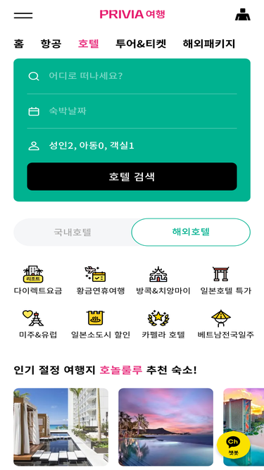 100%국내여행 해외여행 준비에 가장 중요한 호텔 및 숙박! 수영장, 비즈니스, 오션뷰, 럭셔리, 저가, 풀빌라, 리조트 등 전 세계 다양한 숙소를 추천해 드립니다. 호텔스닷컴의 할인 쿠폰과 리워드 프로그램으로 몸과 마음, 지갑까지 힐링해 보세요. 호텔 예약은 역시 호텔스닷컴!