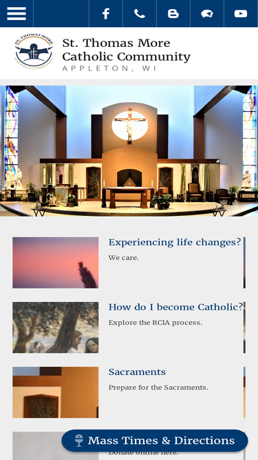 73%We, the Catholic Community of St. Thomas More, strive to deepen our spiritual growth through the celebration of the Word and the Sacraments, to continue the mission of Jesus Christ through our time, talent, and treasure. We encourage each other to be open to the Spirit that leads to transformed lives.