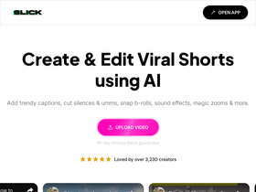 100%Discover Slick, the AI-powered tool that generates precise, fully customisable captions. Cut silences, snap b-rolls, add sound effects, apply magic zooms, and more. Enhance your content effortlessly.