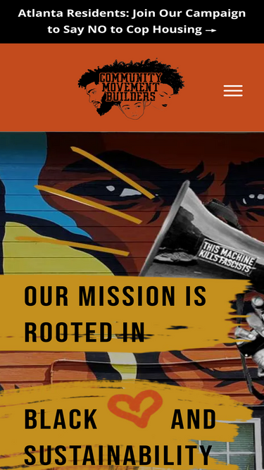 100%Community Movement Builders (CMB) is a Black member-based collective of community residents and activists serving Black working-class and poor Black communities. CMB emerged out of a need to respond to encroaching gentrification, displacement and over-policing. CMB organizes to bring power to Black communities by challenging existing institutions and creating new ones that our people control.