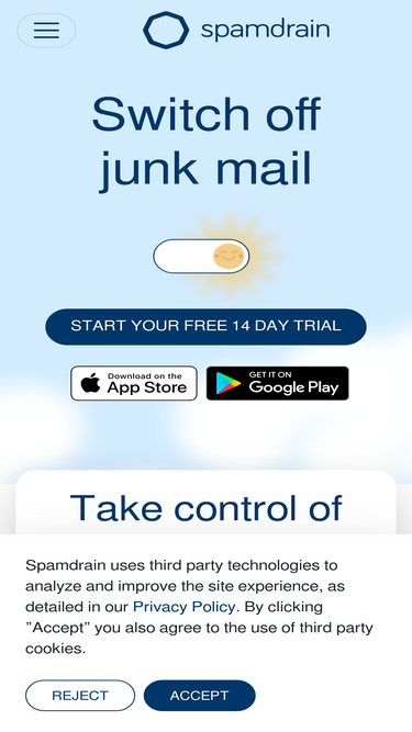 75%Switch off junk mail and spam with Spamdrain smart antispam filter and take control of your inbox. Works for Android, iPhone, Office365, Yahoo, etc.