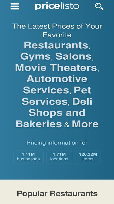 87%View the latest prices of your favorite restaurants, gyms, beauty salons, movie theaters, mechanics, pet groomers, deli shops, bakeries, and more.