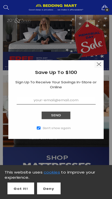 84%Using a quality mattress is essential to getting a good night’s sleep. At Bedding Mart, we make purchasing a sleep system easy. Stop by one of our mattress stores, call us or contact us online with your questions.