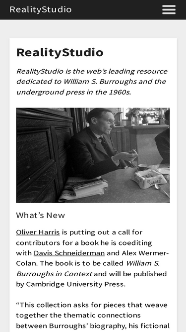 61%realitystudio is a thriving community of fans, writers, and scholars interested in william s. burroughs, naked lunch, cut-ups, etc.