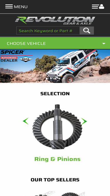 89%Revolution Gear and Axle ring and pinion manufactured to be compatible with front Dana 30 reverse rotation differentials for 2007-18 Jeep Wrangler JK and 2018+ Jeep Wrangler JL non-Rubicon models.Re-gear your Jeep Wrangler with the brand thousands have trusted and elevate your driving experience, whether you're navigating the rugged trails off-road or cruising on the highway. Discover the unmatched benefits of upgrading your Ring and Pinion gear set and understand why it's an essential component in your vehicle. Key Benefits: Enhanced Capability and Performance: The optimized gear ratio improves torque delivery to the wheels, allowing for better traction and control. Towing performance is improved when you install the correct gear ratio for your vehicle setup by providing increased torque at lower speeds, making it easier to pull heavy loads without straining the engine. This means smoother, more efficient towing, whether you're hauling a trailer or carrying gear for your next adventure. Increased Fuel Efficiency at Highway Speeds:Contrary to what one might expect, the right gear ratio can contribute to better fuel efficiency. By optimizing the engine's RPM at highway speeds, the ring and pinion gear set helps maintain a more efficient fuel consumption rate, saving you money and extending your journeys. Superior Strength and Durability:Revolution Gear and Axle is renowned for their commitment to quality. Our ring and pinion gear sets are made from high grade steel using precision gear cutting and heat treatment processes that meet or exceed Original Equipment standards. This results in a product that not only performs exceptionally but also withstands the rigors of both daily driving and extreme off-road conditions. Easy Installation and Quiet Operation:With over 40 years of manufacturing experience, Revolution Gear and Axle ring and pinions are preferred by installers for smooth and consistent setup. Our gear sets offer quiet operation, ensuring a comfortable ride