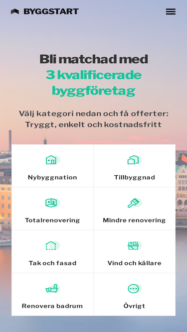 58%Byggstart samlar proffs för bygg och renovering på ett ställe, så att du enkelt kan hitta rätt hantverkare för ditt projekt. Beskriv ditt byggprojekt, matcha med proffs och välj rätt företag för byggande och renovering.