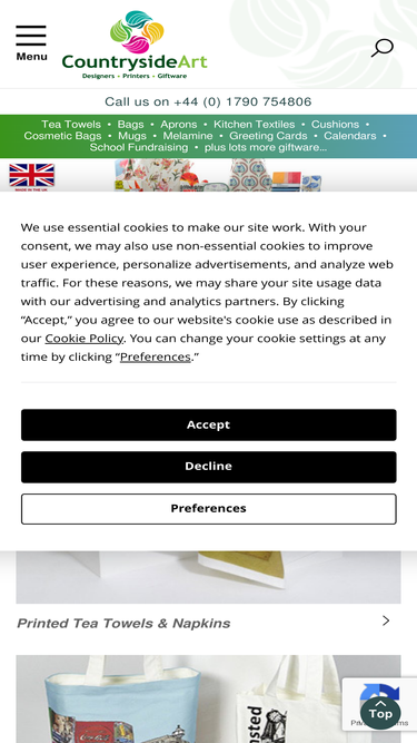 47%tea towels, UK Printed by Countryside Art Ltd. Made in a range of cottons and linen union. Call 01790 754806.