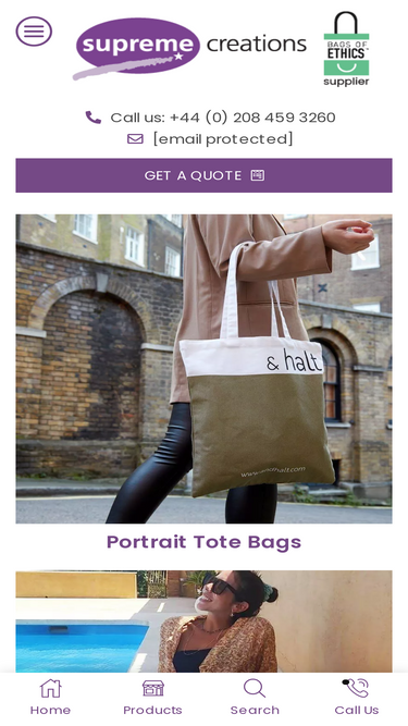 47%Supreme Creations is the world's largest ethical packaging company. We manufacture reusable bags in cotton, canvas, jute and other eco-friendly fabrics, offering custom printing options and wholesale quantities.