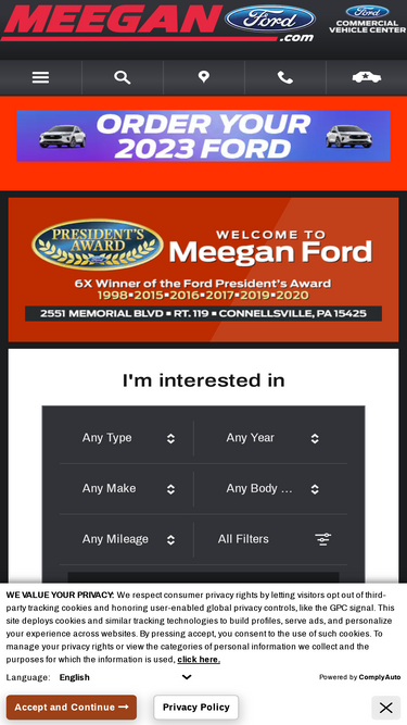 79%visit us at meegan ford in connellsville for your new or used ford car. we are a premier ford dealer providing a comprehensive inventory, always at a great price. we're proud to serve morgantown, scottsdale, and uniontown.