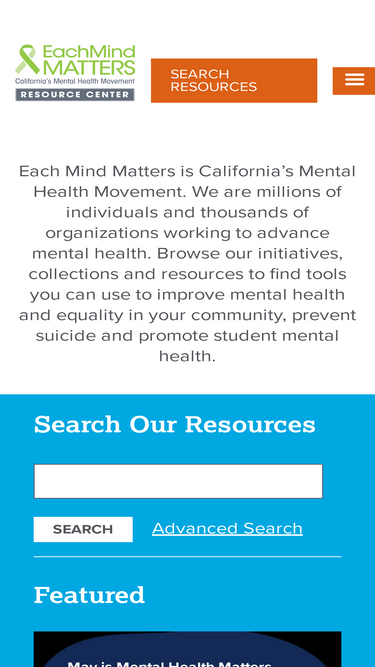 86%Each Mind Matters is California’s Mental Health Movement. We are millions of individuals and thousands of organizations working to advance mental health. Browse our initiatives, collections and resources to find tools you can use to improve mental health.