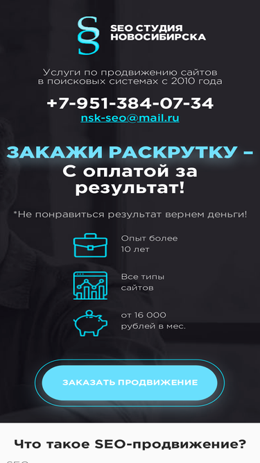 seo студия новосибирска – комплексное продвижение и оптимизация сайтов без переплат за офисы в центре и кучу ненужных сотрудников, современный подход к продвижению, не быстро, но качественно!