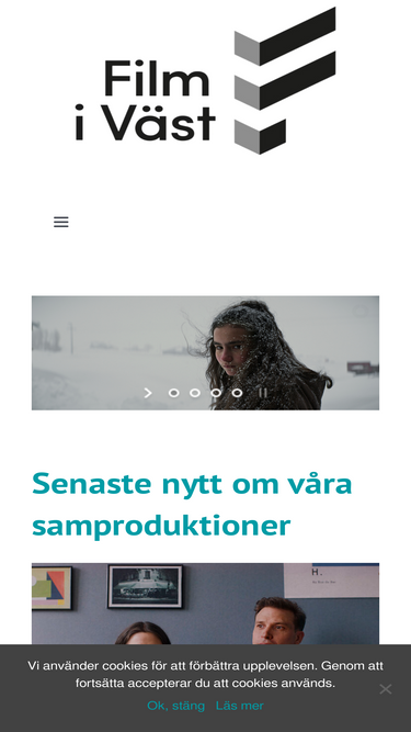69%Film i Väst är en stabil partner i en rörlig filmvärld. Sedan 1992 har vi samproducerat fler än 1 600 filmer och dramaserier. Vi bidrar med kunskap, erfarenheter och ett brett kontaktnät som kan leda till publika framgångar och festivalsuccéer.