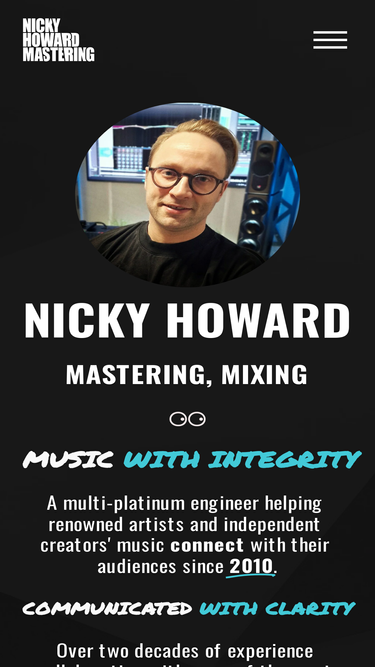 92%Nicky Howard is an award-nominated Mastering & Mixing Engineer with over 20 years of professional experience. Clients include Anjunadeep, Afterlife, Global Underground and many more.