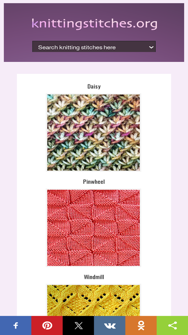 89%100+ knitting stitches, including knit purl stitches, slip stitches, chevrons, ripples, waves, cables, eyelets, lace, bobbles, mosaic and more...