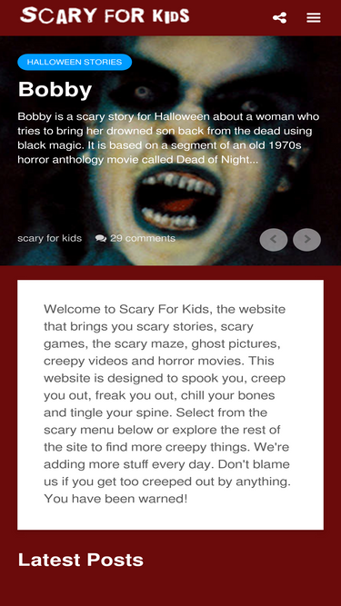 87%scary stories, urban legends, scary games, scary videos, scary pictures, ghost stories, haunted places, scary monsters, scary things and scary stuff.