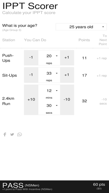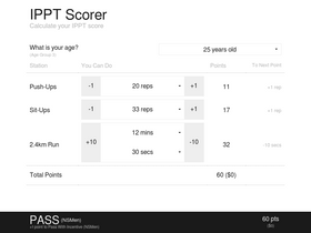 Calculate your IPPT score based on your performance.