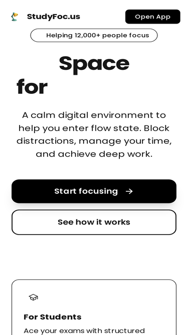 80%A space for focus that helps students study more and achieve more. Block distractions, manage your time, and stay in flow.