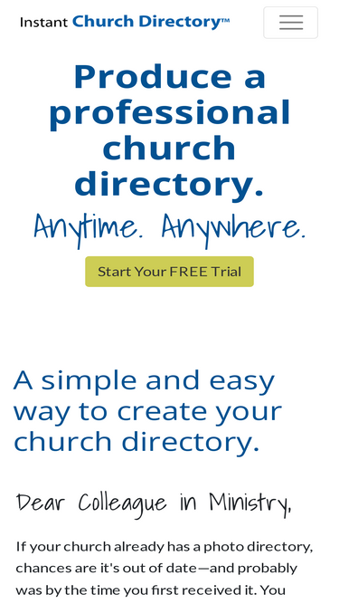 82%instant church directory is your solution to producing a professional church photo directory in hours. start your free trial today.