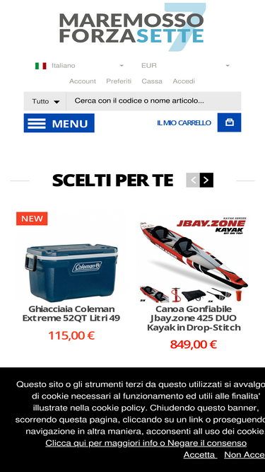 72%maremossoforzasette.it - vendita online di articoli nautica, pesca e subacquea. nel sito sono presenti migliaia di articoli: fucili subacquei, mute, canne da pesca