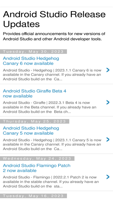 62%Provides official announcements for new versions of Android Studio and other Android developer tools.