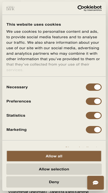 79%Evästekäytäntö ja tietosuoja Ravintola Bankin verkkosivut käyttävät evästeitä. Käyttämällä Ravintola Bankin verkkosivuja hyväksyt tämän käytännön ja annat suostumuksesi evästeiden käyttöön. Evästeet ovat tekstitiedostoja, joita internetselain tallentaa käyttäjän laitteelle. Evästeisiin tallennetaan tietoa käyttäjän käyttäytymisestä verkkosivulla. Kun käyttäjä palaa sivulle myöhemmin, selain lähettää sivulle takaisin sille kuuluvat evästeet. Evästeiden avulla sivu tunnistaa käyttäjän ja hyödyntää edellisten istuntojen […]